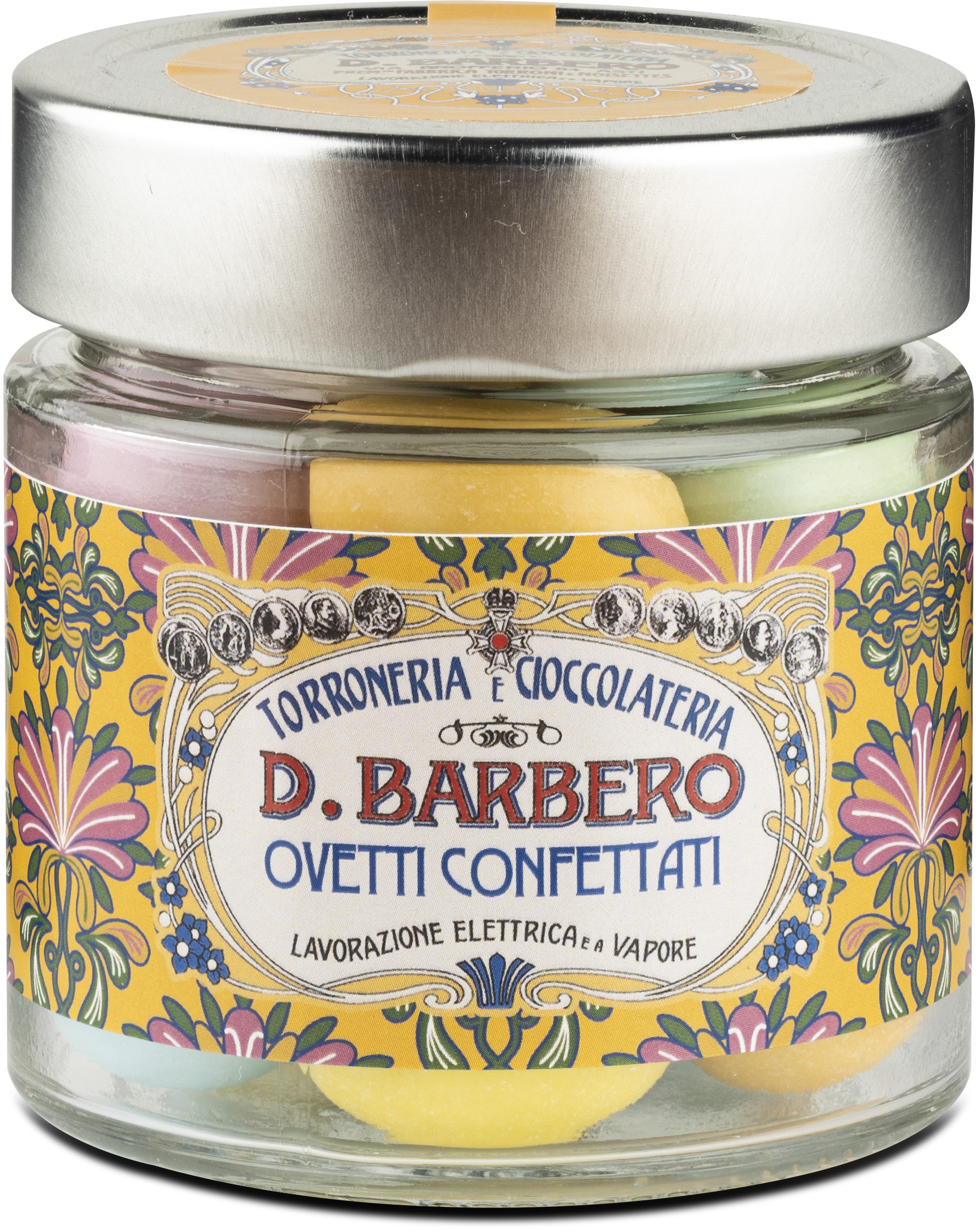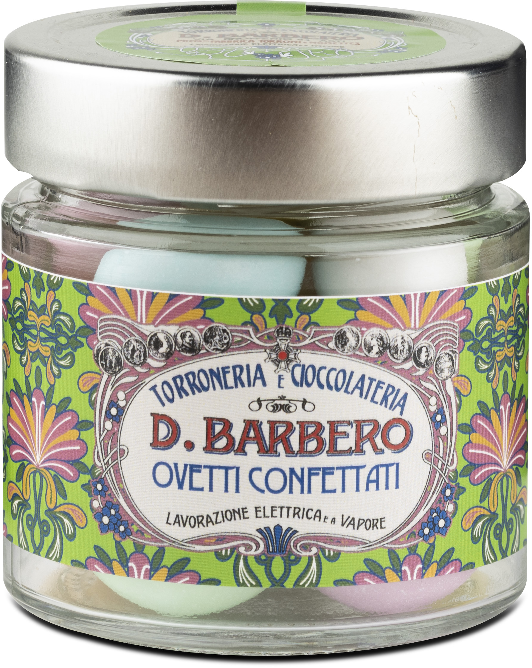 Ovetti confettati ripieni di cioccolato extra fondente in barattolo di vetro – Gesuikerde eieren gevuld met extra pure chocolade in een glazen pot (160 g)